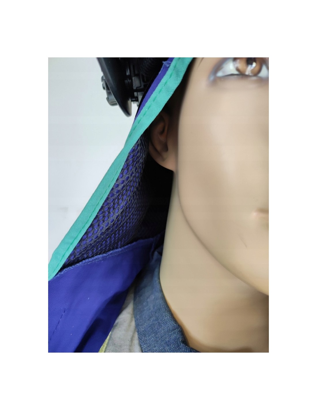 - Wewnętrzna siatka zapewnia przepuszczalność powietrza. Lepszą niż tradycyjne kaptury spawalnicze.