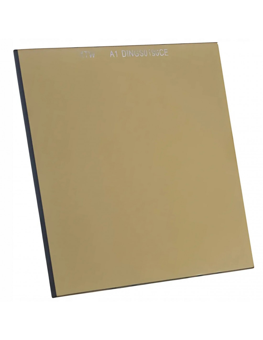 Szklany filtr spawalniczy metalizowany, złoty o wymiarze 90x110. Stopnień zaciemnienia DIN 10. Pakowany pojedynczo w woreczek.