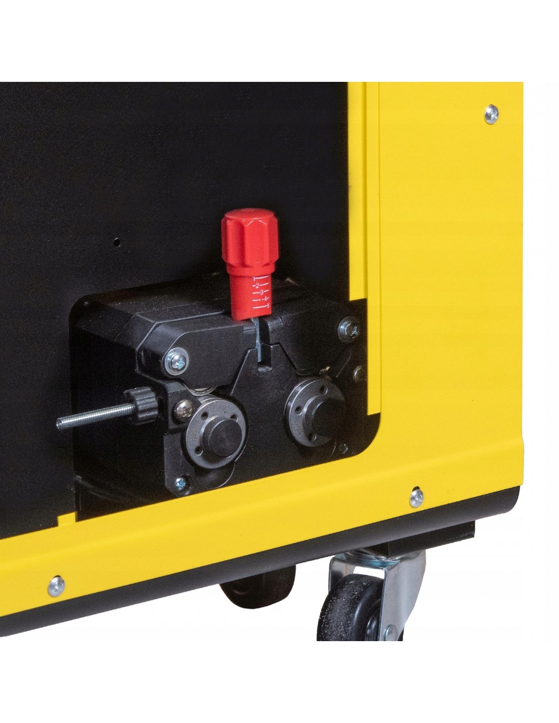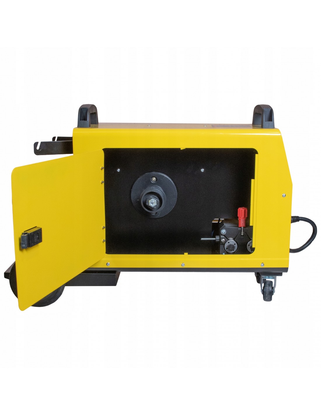 Źródło prądu zostało zbudowane w oparciu o najnowszą technologie wykorzystującą tranzystory IGBT, co przekłada się na zmniejszenie zakłóceń elektromagnetycznych, małe straty mocy, zwiększenie wydajności i niezawodności źródła prądu oraz wpłynęło znacząco na zmniejszenie zużycie energii. Urządzenie posiada płynną regulacje parametrów spawania, wyposażone jest w przeciążeniowy układ zabezpieczenia termicznego, zapobiegający nadmiernemu przegrzewaniu się. Spawarka wyposażona jest w 4-rolkowy podajnik drutu z gniazdem "euro złącze" pozwala na podłączenie różnych typów uchwytów spawalniczych.