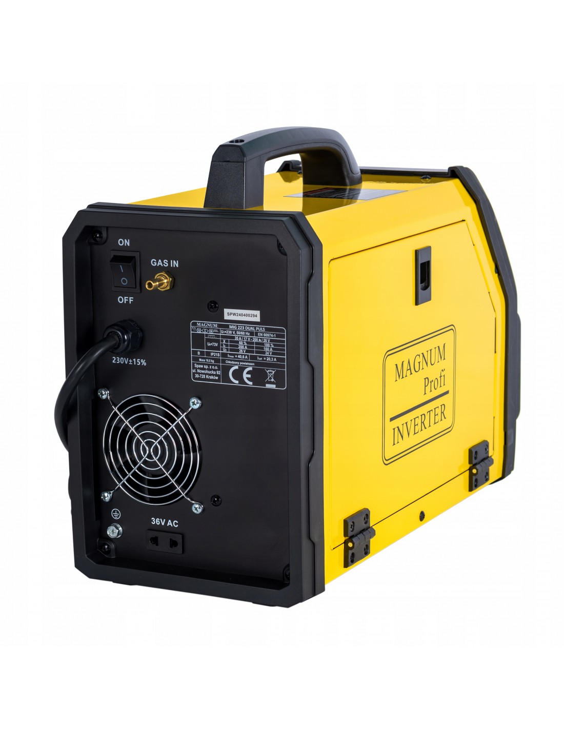 Spawarka Magnum MIG 223 Dual Puls SYNERGIA z wyświetlaczem LCD to wszechstronne i zaawansowane technologicznie urządzenie spawalnicze do spawania metodą MIG/MAG, MMA oraz TIG Lift. Przeznaczone do ręcznego, elektrycznego spawania stali niskowęglowych, niskostopowych, stali wysokostopowych nierdzewnych i kwasoodpornych oraz aluminium i jego stopów itp.