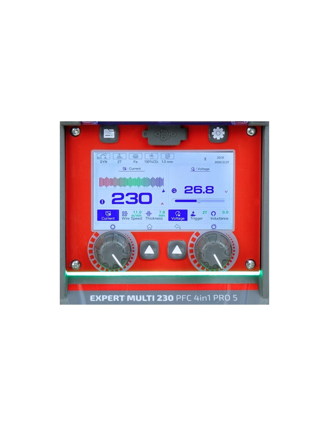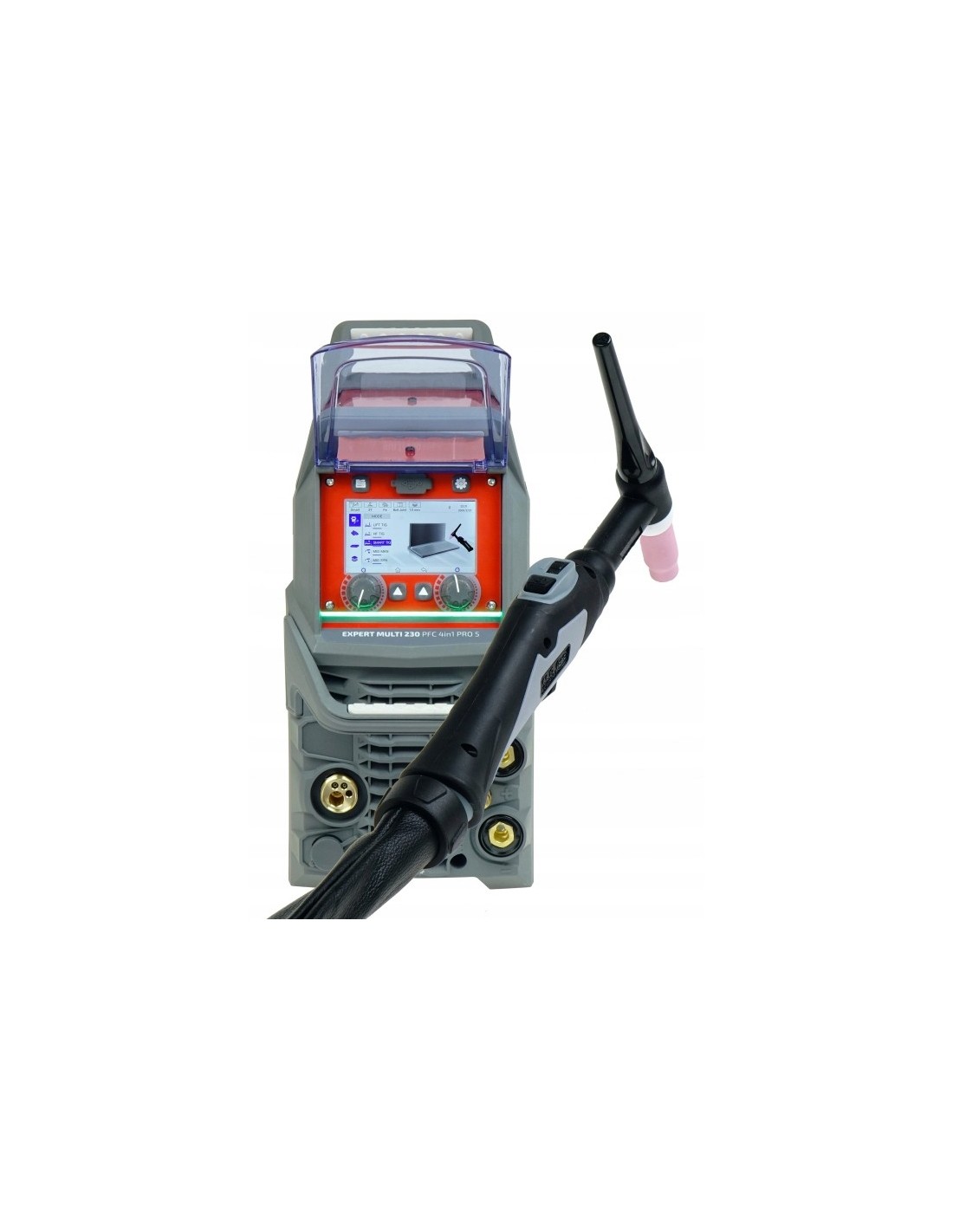 EXPERT MULTI 230 PFC PULSE 4in1 Pro5 synergiczne i wielofunkcyjne źródło spawalnicze, przeznaczone do spawania łukowego metodą MIG/MAG, FLUX, TIG i TIG PULS prądem przemiennym (AC), stałym (DC), oraz metodą MMA (elektrodą otuloną) prądem stałym (DC) oraz przemiennym (AC).