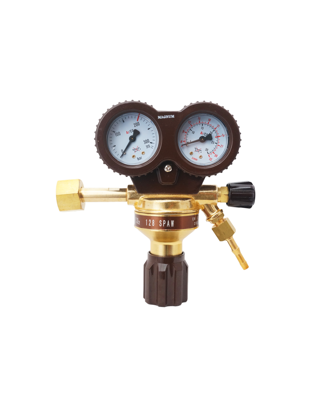 Magnum SERIA 128 AR/CO2 to niezawodny reduktor z 200 bar/4 bar i 32 l/min! Osłona manometrów, zawór odcinający – stabilny gaz dla każdego warsztatu MIG/MAG. Solidność w każdym detalu!