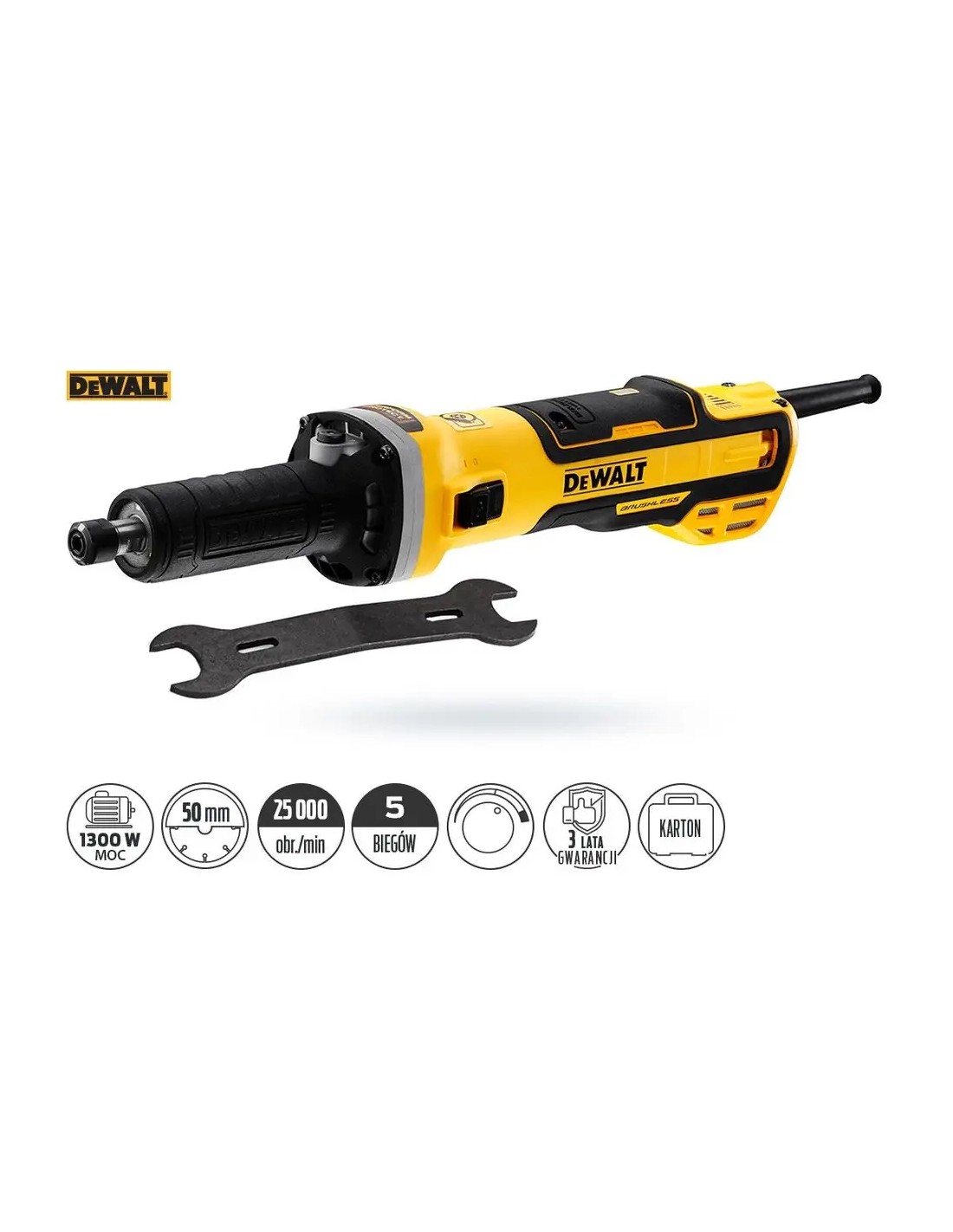 Bezszczotkowa szlifierka prosta 1300 W 5-biegowa 7500-25000 obr-min DeWALT DWE4997